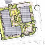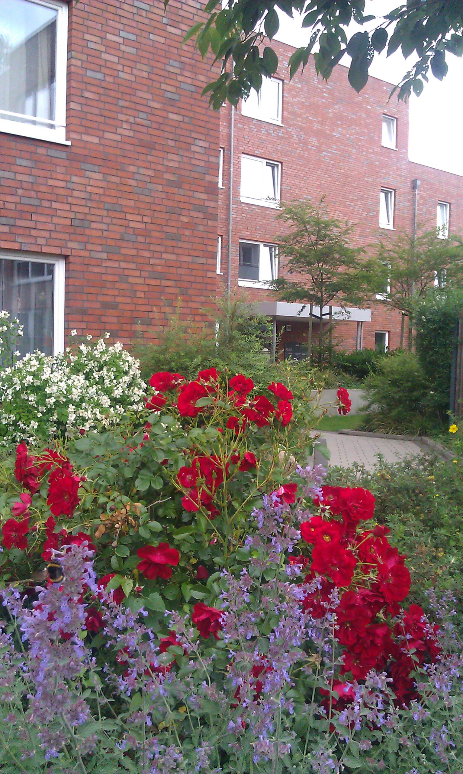 Aufgabenstellung: Entwicklung ein ganzheitlich wirkendes Quartier. In welchem die einzelnen Höfe einen eigenen Akzent erhalten, gleichzeitig offen für die Nutzung aller Bewohner sind, aber auch Bereiche bieten, in denen eine ruhige Atmosphäre die Privatheit der Bewohner schützt. Ein breit gefächertes Freiflächenangebot mit hoher Aufenthaltsqualität, soll die Bewohner des sukzessiv wachsenden Quartiers zusammenführen. Die Bepflanzung mit Bäumen, Hecken, Solitärsträuchern und bodendeckenden Stauden soll den Gesamtcharakter des Quartiers unterstreichen, leicht zu pflegen und mit vielfältigen Blühaspekten eine bienen- und vogelfreundliche Struktur bieten.